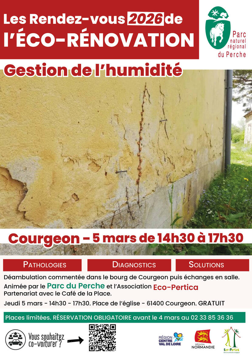 Pratique. Atelier humidité : visite du bourg et échange en salle. De 14h30 à 17h30. Départ place de l’église. Gratuit. Réservation obligatoire au 02 33 85 36 36 avant le 4 mars. Organisé par le Parc naturel régional du Perche et l’association Eco-Pertica.